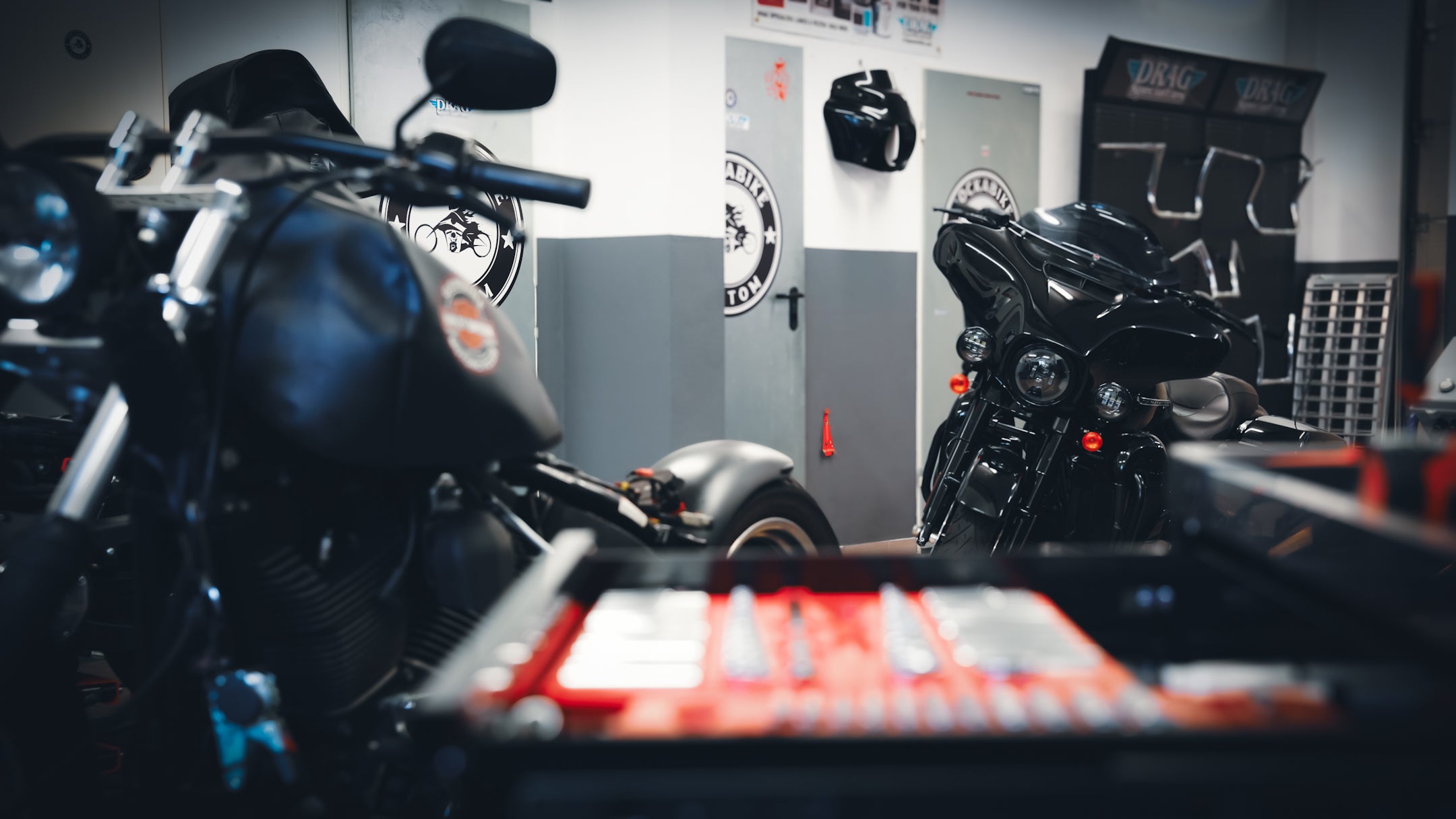 Alle Kundenfahrzeuge sind bei uns in der Halle untergebracht. Und wenn wir an deinem Bike arbeiten, sorgen wir dafür, dass es rundum geschützt ist – keine Kratzer, keine Schäden, nur erstklassige Arbeit.Bei uns steht dein Bike niemals im Regen!